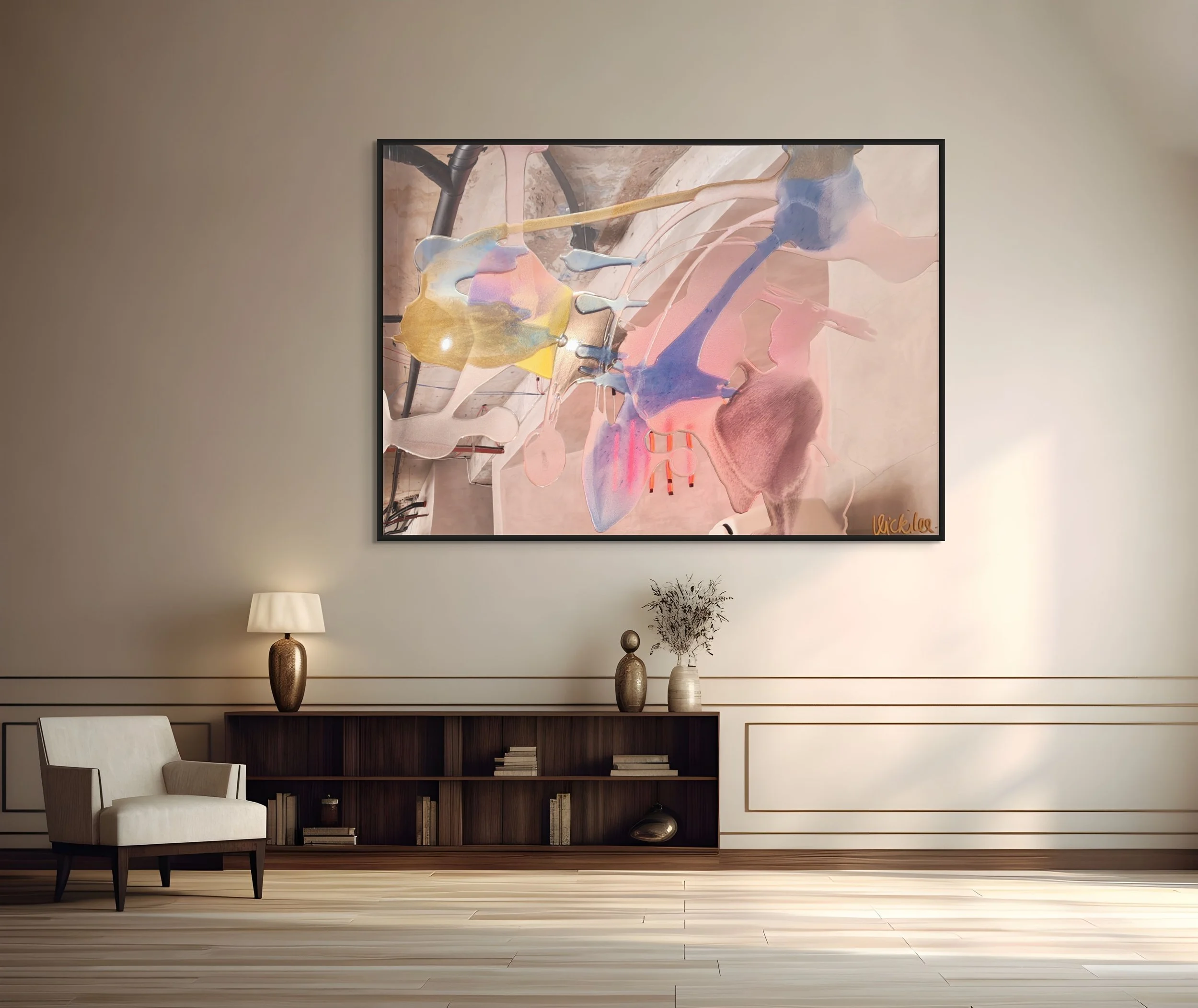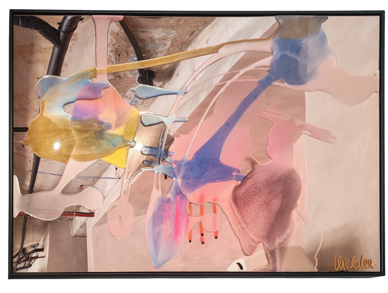Resin, pigment and paint on Rose Gold Mirrored Perspex
